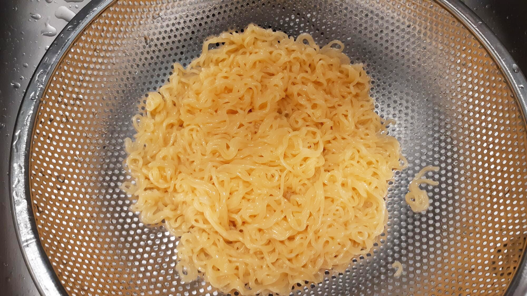 면은 가느다란 면이고 흰색보다는 옅은 주황색을 띄고 있습니다.